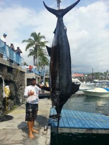 1,211 lbs. Pacific Blue Marlin caught 03-27-14 while deckhanding for Capt. Dave Unger. It was the Largest blue marlin weighed anywhere in the world for 2014